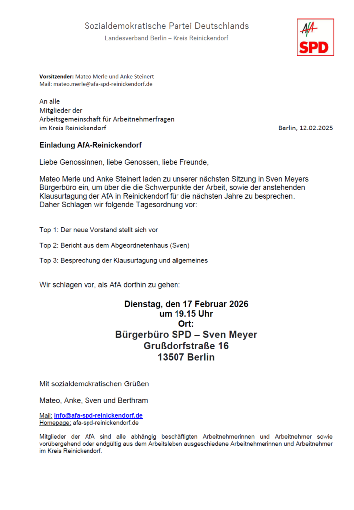 Start / Allgemein / Einladung zur ersten AfA-Sitzung